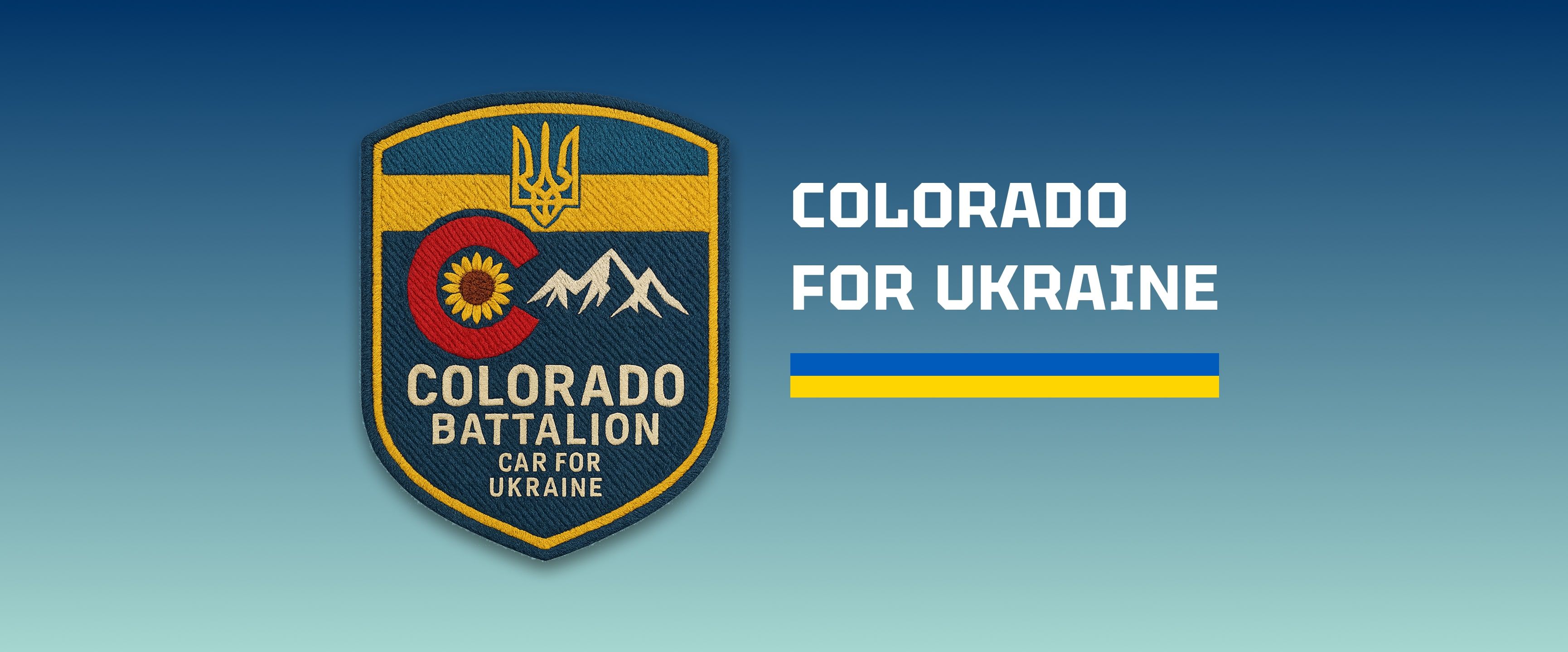 The Colorado patch represents the unity of Colorado and Ukraine. The Colorado ‘C’ embraces the Ukrainian Sunflower and the Rocky Mountains lend their strength to the Carpathians. The Ukrainian flag with Tryzub ties the mission of the Colorado Battalion to its outcome – delivering frontline vehicles to Ukraine.