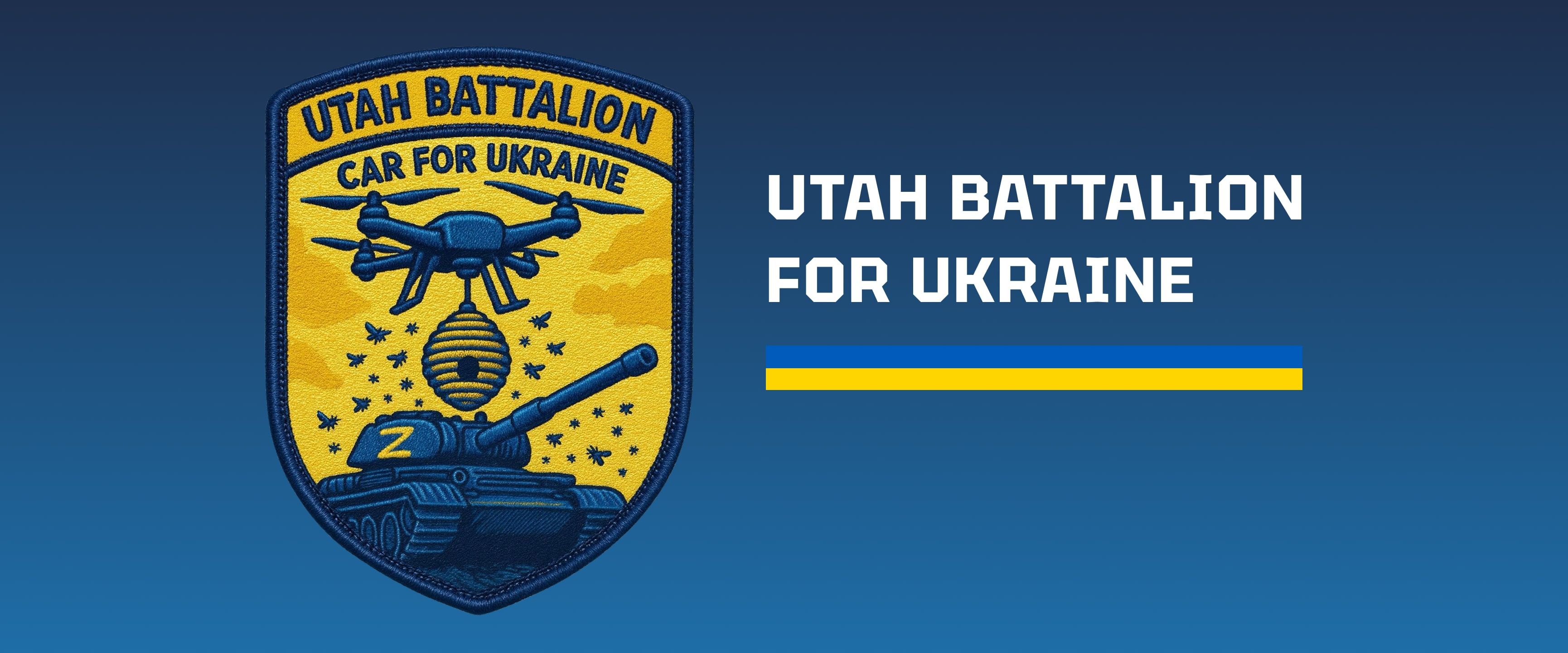 The Utah Battalion patch features a Ukrainian drone dropping a beehive on a russian tank, forcing the invaders to flee Ukraine, and go back home with nothing.